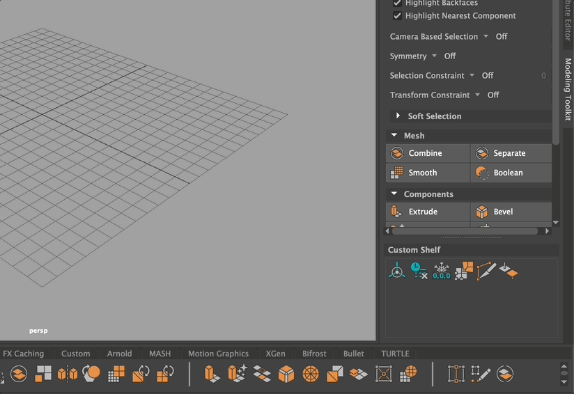 At the bottom of the Modeling Toolkit is the Custom Shelf, where you can add your most-used functions.